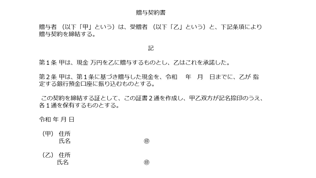 ➁また贈与においても契約書、つまり贈与契約書の作成が必要です。
