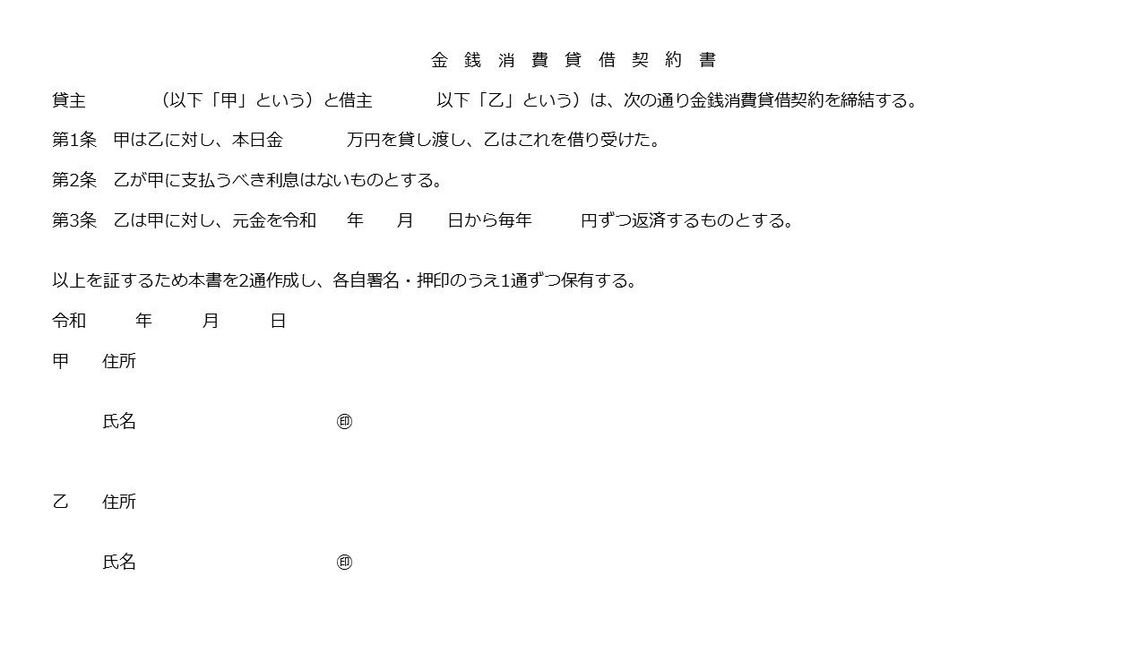 ただし、金利なしということをきちんと契約書に記載する必要があります。