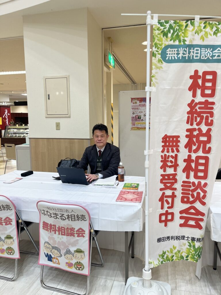 本日(令和7年12月3日)フジグラン安芸で一般社団法人はなまる相続が「はなまる相続相談会」を開催しています。税理士の棚田は相続税中心に相談対応させていただきます。