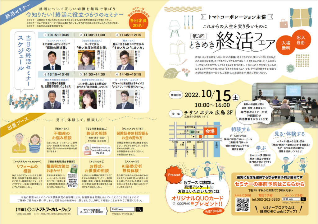 【セミナー】10月15日(土)ときめき終活フェア開催 チサンホテル広島