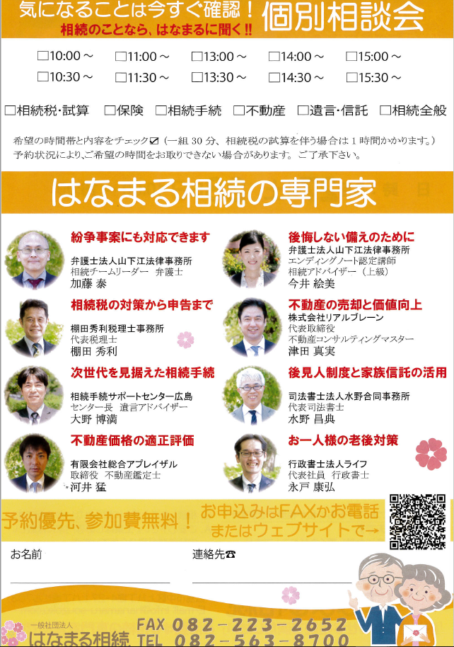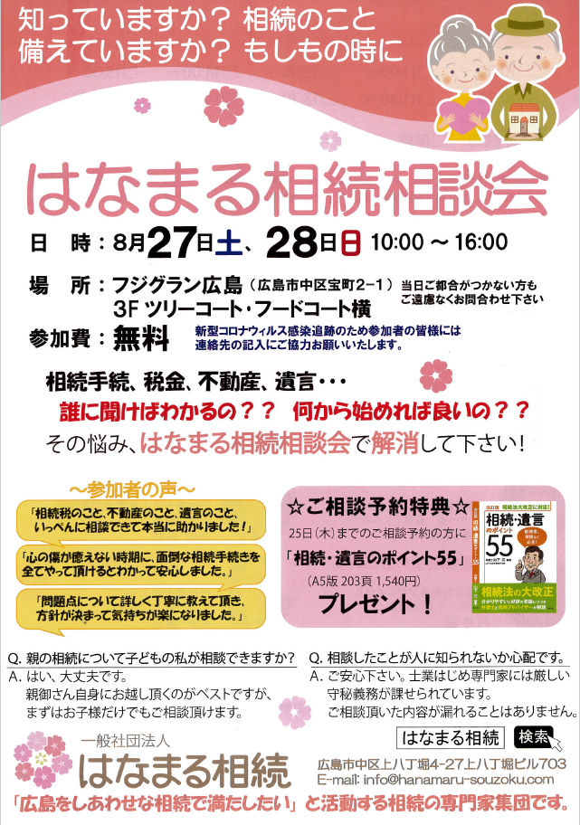 【相談会】8月27日(土)、28日(日)はなまる相続相談会開催 フジグラン広島